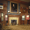 I made my five embroideries into fire screens—the ornamental screens with which Victorian women shielded their complexions from the heat as they sat by the fire. Installed in the library at The Grange, my pieces corresponded with the Minton tiles that decorate the mantelpiece surrounding the hearth, which are illustrated with scenes from Shakespeare’s plays. Mr. Smith’s masculine preserve was host to a group of Shakespeare’s women conducting a fireside chat.